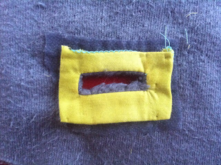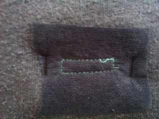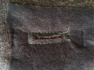 Beleg von außen nach innen wenden, vorsichtig bügeln. Die Belegecken von Hand am Vorderteil feststicheln. Fertig ist der Eingriff!